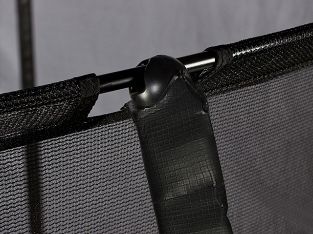 The fibre glass poles that run around the top of the enclosure ensure there is no sagging of the top of the net and help the net to run vertically down to the edge of the jump mat.