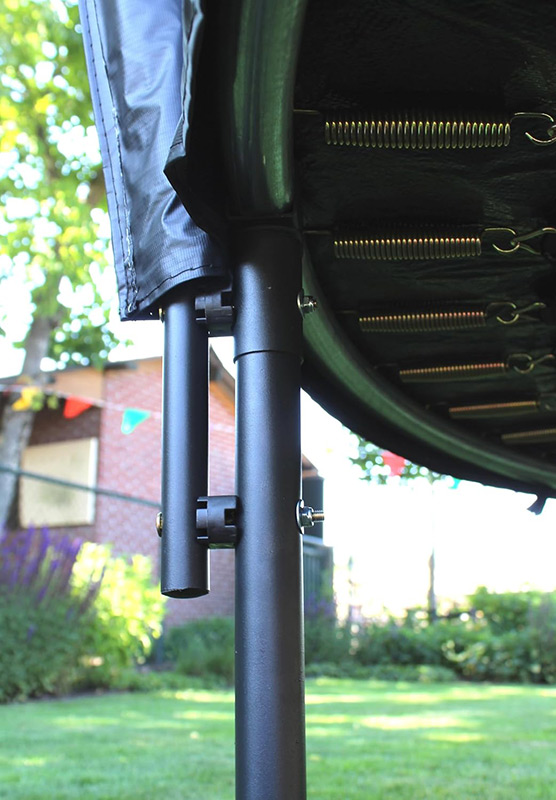 The HOT galvanisation process ensures that the trampoline frame sections are galvanised inside and out, which is better for garden and outdoor use. (unlike most other more cheap galvanised frames that are only galvanised on the exterior of the frame). The trampoline legs and lower enclosure poles are then powder coated for an extra layer of protection.