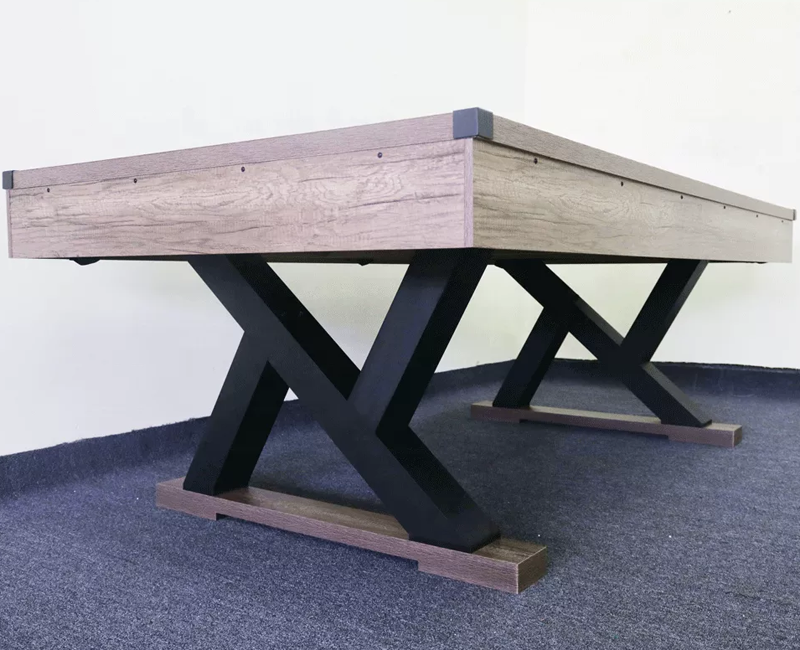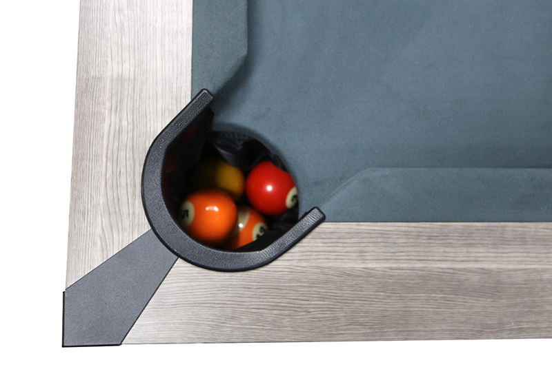 The Regency Deluxe table has a clean design and comes with traditional US-style drop pockets. This is a huge advantage on a table of this size, with fewer internal components to wear or go wrong and there are no risks of blockages either. Finally, the lack of a ball return channel means that the Regency Deluxe table is an exceptionally sleek-looking table. The unique eye-catching black frame matches the pockets and corner trims, and the cabinet is finished in a choice of wood grain PVC or Black laminate making this a beautifully designed contemporary table.